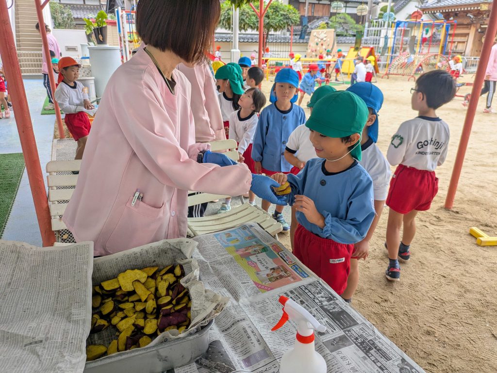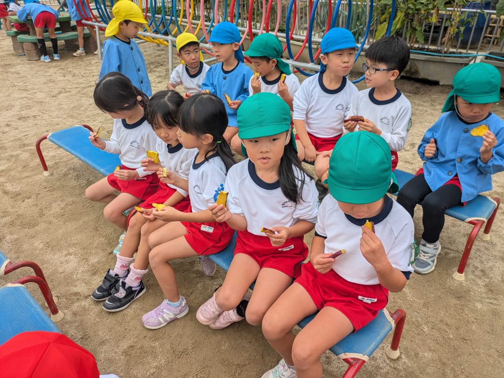 2025年10月24日 / 最終更新日 : 2025年10月24日 goshinji お知らせ おかわりありますか? 先日芋畑でとれたサツマイモを園庭で揚げて、みんなで食べました。子供達は一度食べておいしかったようで『おかわりあるかな?』と覗き込んでいました。おかわりがあることがわかると、喜んでおかわりの列が出来ていました。