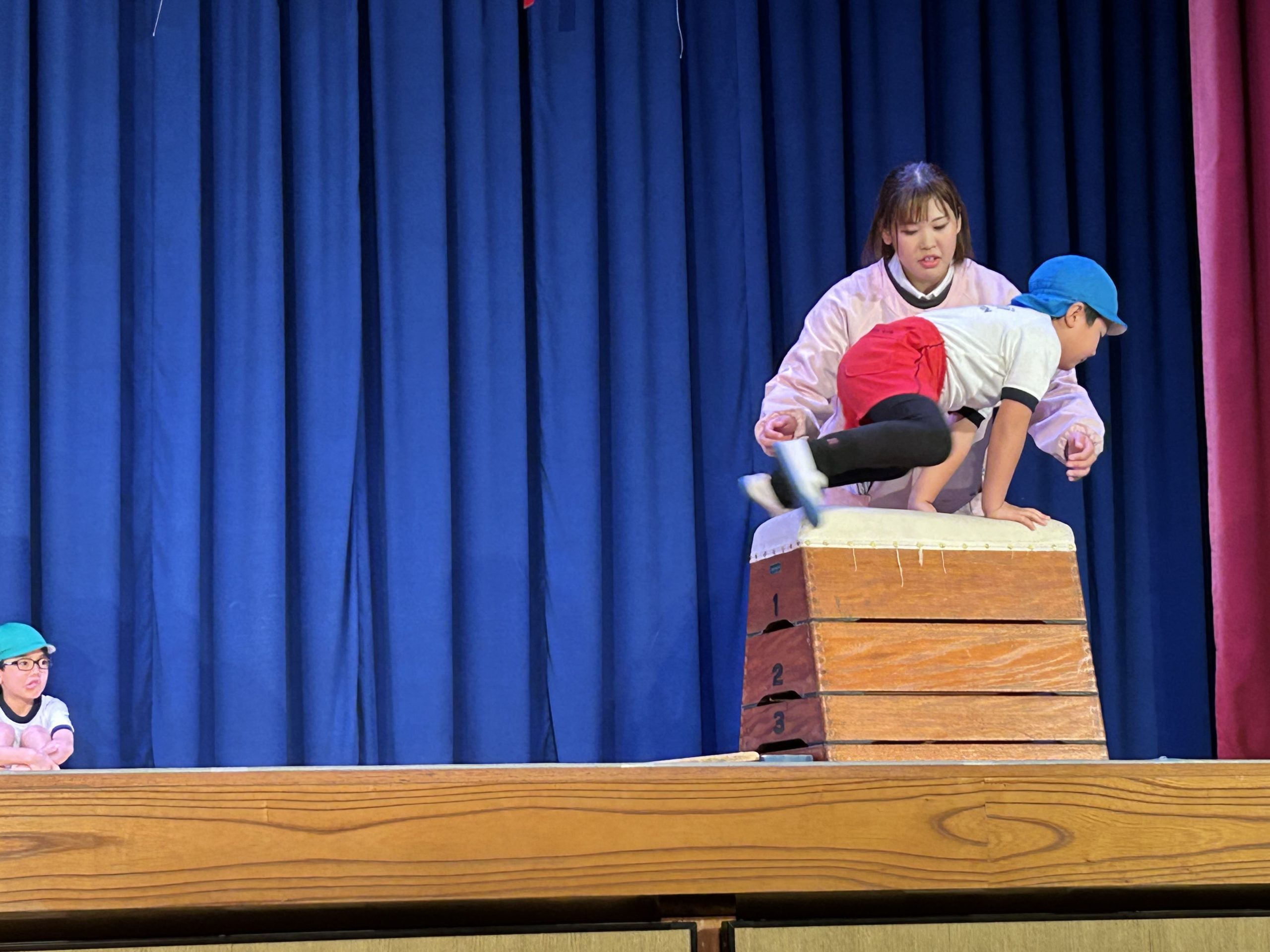 2025年12月3日 / 最終更新日 : 2025年12月3日 goshinji お知らせ 体育ローテーションを舞台上で。輝け、年長組! 生活発表会で年長組さんにはもう一つ、発表の場があります。それが『輝け、年長組!』。日々の体育ローテーションの頑張りを舞台の上で披露します。3年間、頑張って運動してきたのでみんな自信をもって取り組めました。