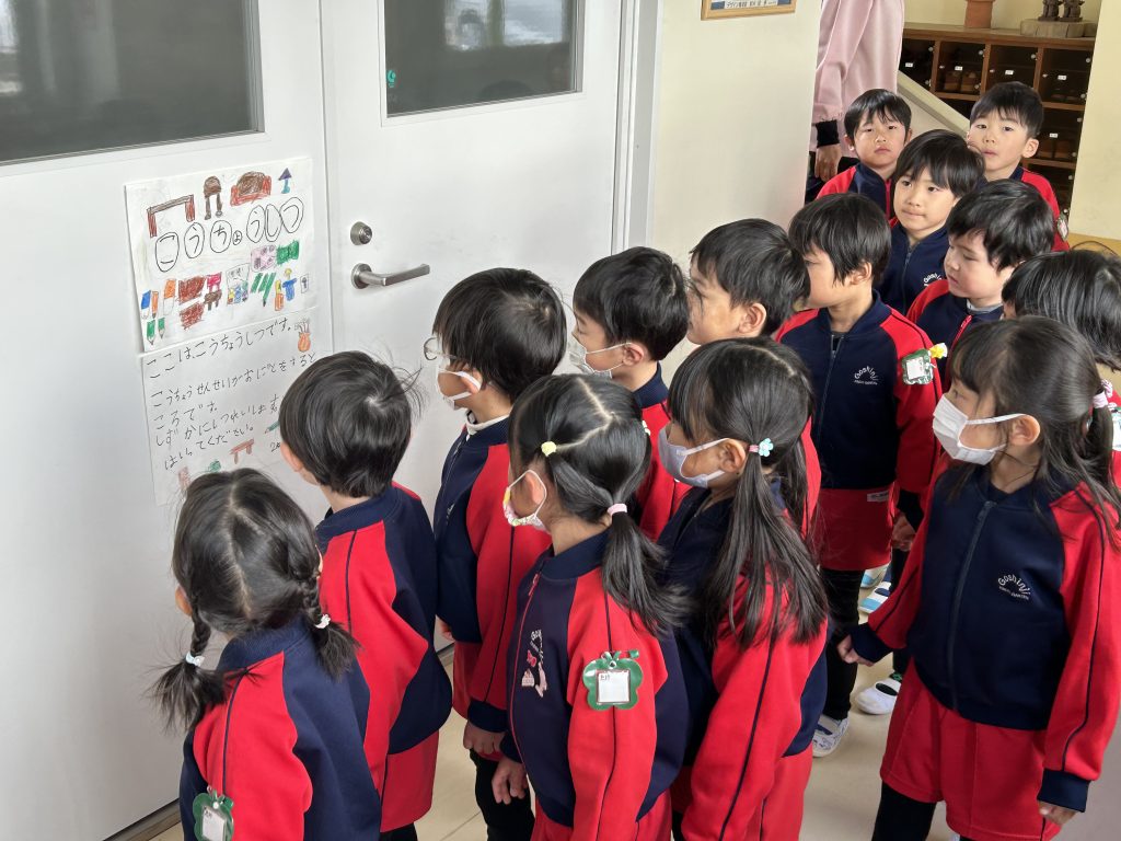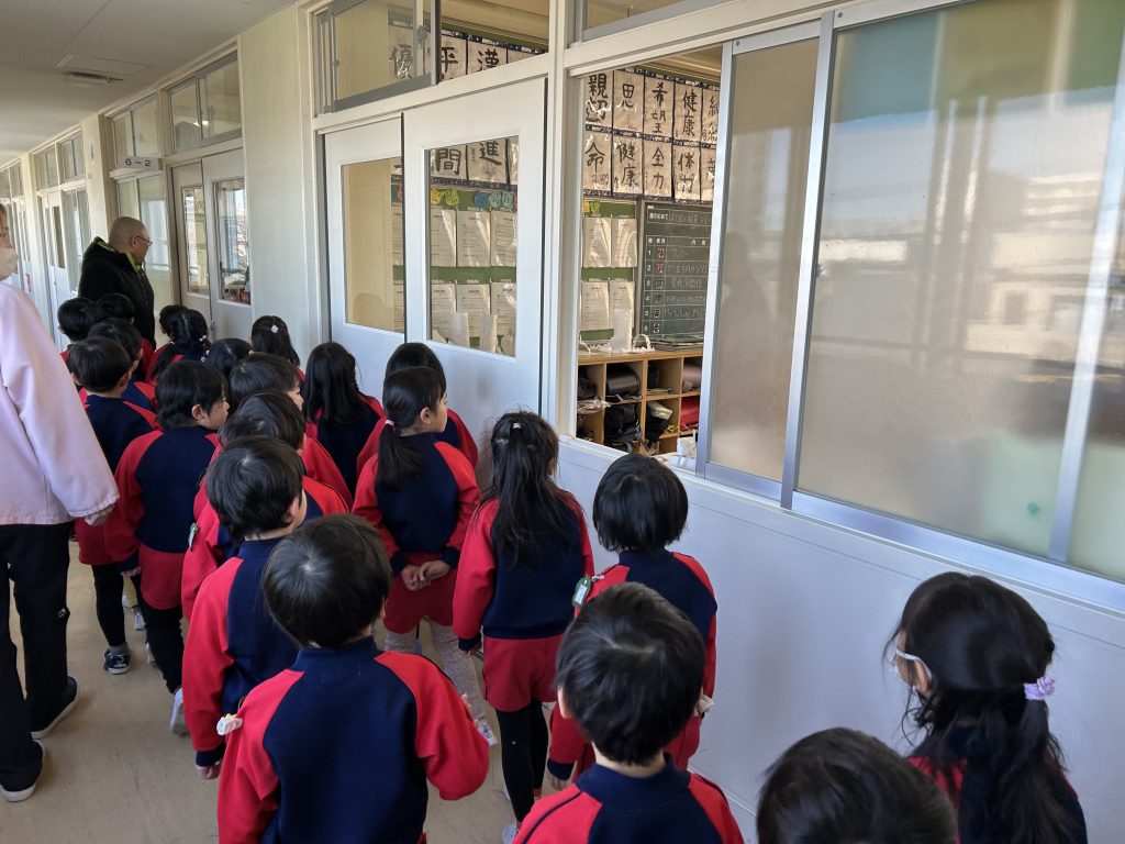 2026年2月20日 / 最終更新日 : 2026年2月20日 goshinji お知らせ 小学校探検in松葉 年長児の就学支援の一環として近所の松葉小学校に訪問してきました。小学校の先生にご案内頂きながら校舎を全員で探検。所々で『家庭科室というところはみんなでご飯を作る場所だよ』と説明を受けたりしてみんな興味津々でした。
