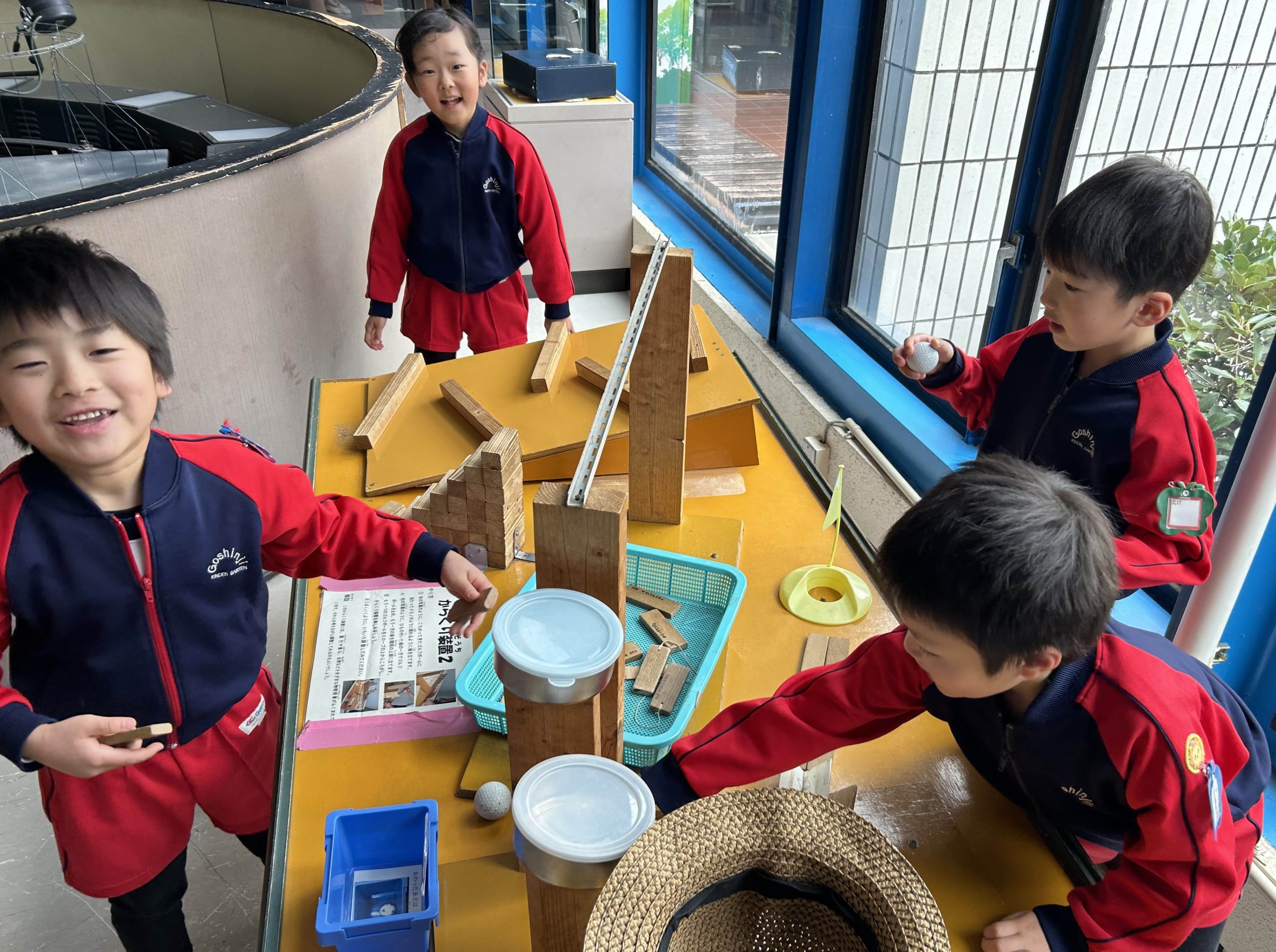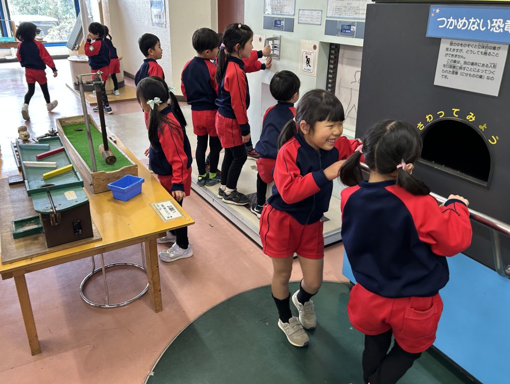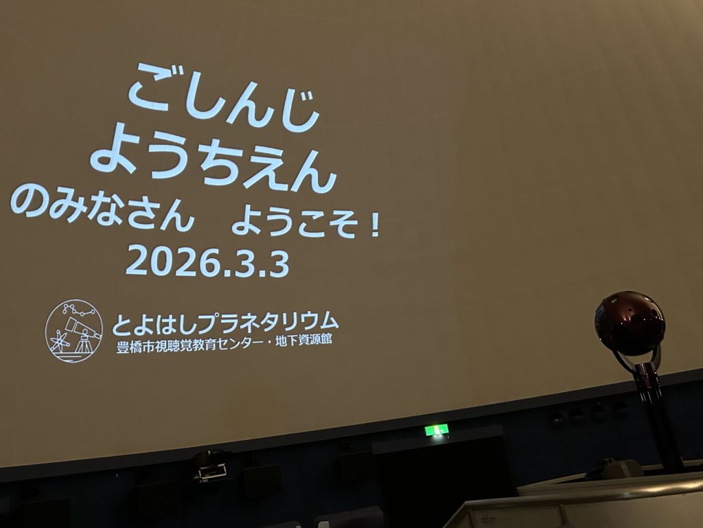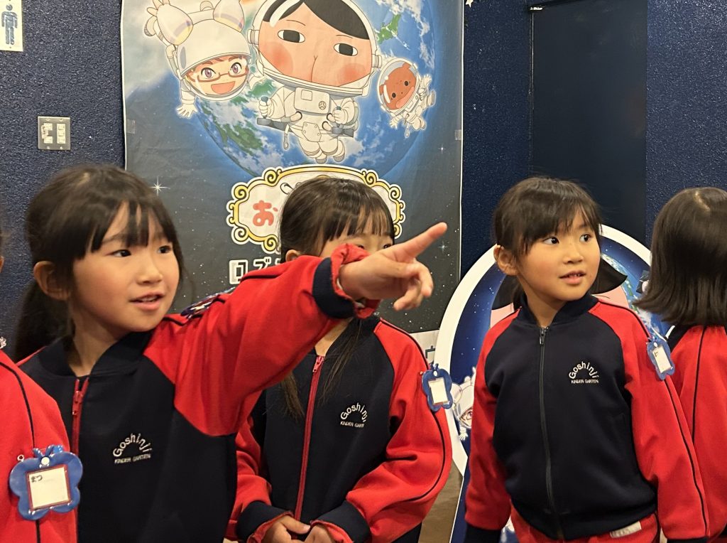 天気は雨。子ども達は残念がるかと思いきや、楽しそうな話し声が響いていました。聞き耳を立ててみるとプラネタリウムの話しではなくお弁当の話し、おやつの話し。まだ出発したばかりなのに・・・。