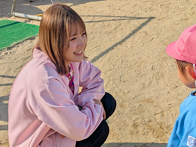 毎日いろんな出来事があったり、子どもの面白い発想や言葉を聞けたりして、刺激的でとても楽しい仕事です。悩んでいる時に相談ができる優しい先輩や心強い同期がいるので、安心して働くことが出来ます。